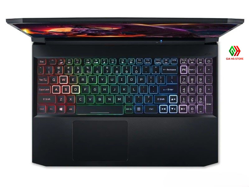 Đèn nền bàn phím sử dụng đèn nền RGB 4 vùng và trackpad cũng được bo viền RGB nổi bật. Bàn phím đem đến độ phản hồi nhanh cùng với trải nghiệm chơi game cực kỳ phong phú và đẹp mắt. Cụm phím chuyên sử dụng khi chơi game cũng được thiết kế để dễ nhận diện khi chơi game. Giờ đây, game thủ có thể tùy chỉnh các thiết lập màu sắc và hiệu ứng khác nhau ngay trên phần mềm Nitro Sense được tích hợp sẵn.